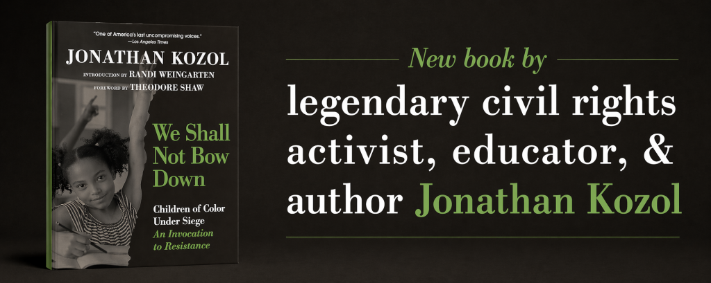 Kozol says that at 89 years-old, this is his final book. That news makes We Shall Not Bow Down even more urgent. In this short book, Kozol explores the pedagogical cruelty imposed on our most vulnerable citizens. In 1964, Rhodes Scholar Jonathan Kozol learned of the assassination of civil rights workers, Goodman, Schwerner, and Chaney, and asked to teach in one of Boston’s segregated schools. Within a year, he was charged with “curricula deviation” and fired for reading a Langston Hughes poem to 4th graders. This led to his first book, Death at an Early Age, a National Book Award winner, and embrace by patriots like Dr. Martin Luther King, Jr. For more than six decades, Kozol has fearlessly given voice to American school children and their teachers.